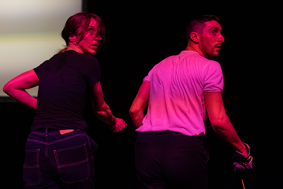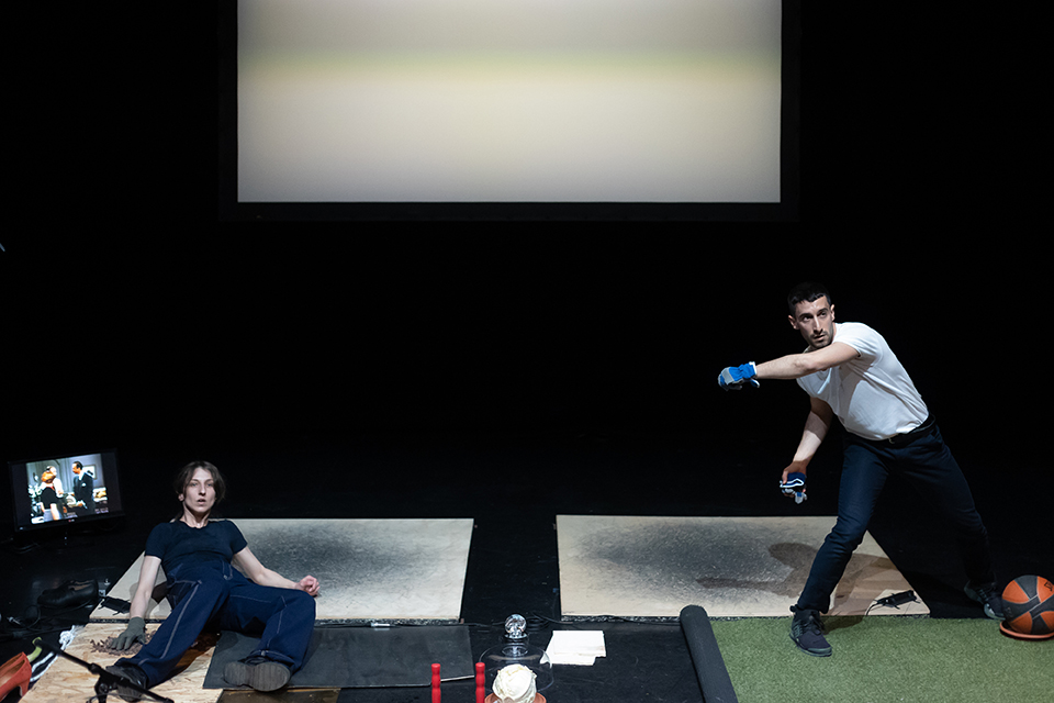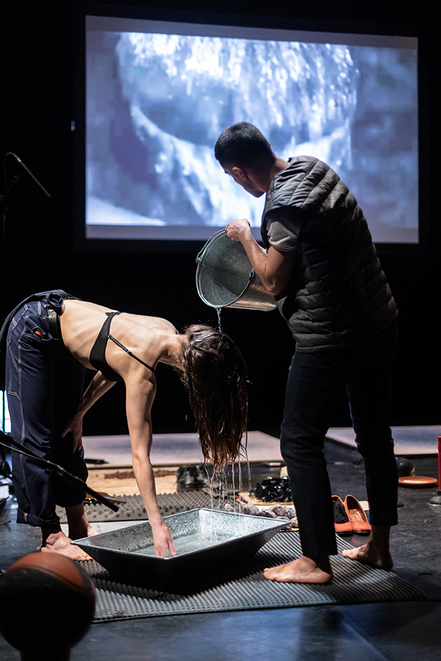 Concept & Choreography: Ioanna Paraskevopoulou | Performance: Georgios Kotsifakis, Ioanna Paraskevopoulou | Audio Technical Support & Live Sound Design: Vasilis Zlatanos | Lighting Design: Eliza Alexanoulou | Tour Lighting Design: Tzanos Mazis | Video Engineer: Konstantinos Asimakopoulos | Dramaturgy: Elena Novakovits | Set & Costume Design: Ioanna Paraskevopoulou | Video Editing: Ioanna Paraskevopoulou | Wooden Constructions: Miltos Athanasiou | Poster Design: Bois Futuri | Photography: Pinelopi Gerasimou | Production Management: Ioanna Paraskevopoulou | Tour Management: Cultόpια & Ioanna Paraskevopoulou | Special thanks to: Eleni Tzarou, Thanos Daskalopoulos, Alexandros Tomaras | Produced by: Onassis STEGI and first presented as part of Onassis New Choreographers Festival 9