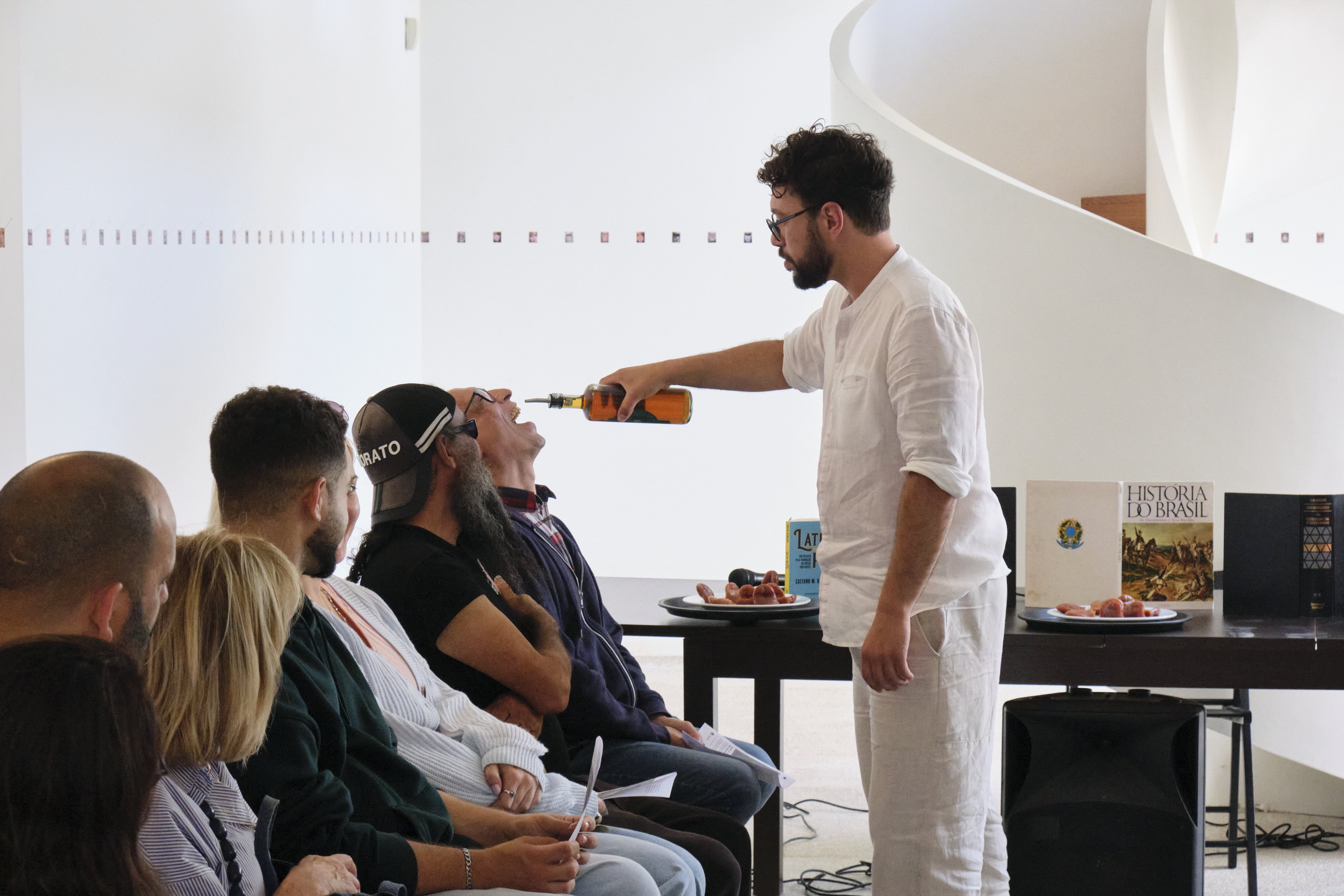 Para o primeiro encontro de 2023 acolhemos em residência artística o projecto Es.Col.Az (Estudo coletivo da aprendizagem), um projecto de investigação-criação com curadoria de Carlos Manoel Oliveira que toma a forma de eventos de ocupação crítica, incidindo sobretudo em lugares associados ao conhecimento como escolas, museus, teatros ou bibliotecas. Cada evento se organiza à volta de um formato próprio, tendo como base as práticas de trabalho e investigação dos convidados. O conceito de “corpo” e “performance”, juntamente com “técnica”, são os elos de ligação entre os profissionais que participam nas residências. Embora o elenco de participantes possa ser alterado a cada residência, mobilizando diferentes membros da comunidade, há um objectivo comum de criar ligações com os espaços ocupados, interagindo de forma artística e crítica com os seus contextos, com as suas histórias e criando processos de partilha de práticas performativas com o público local.